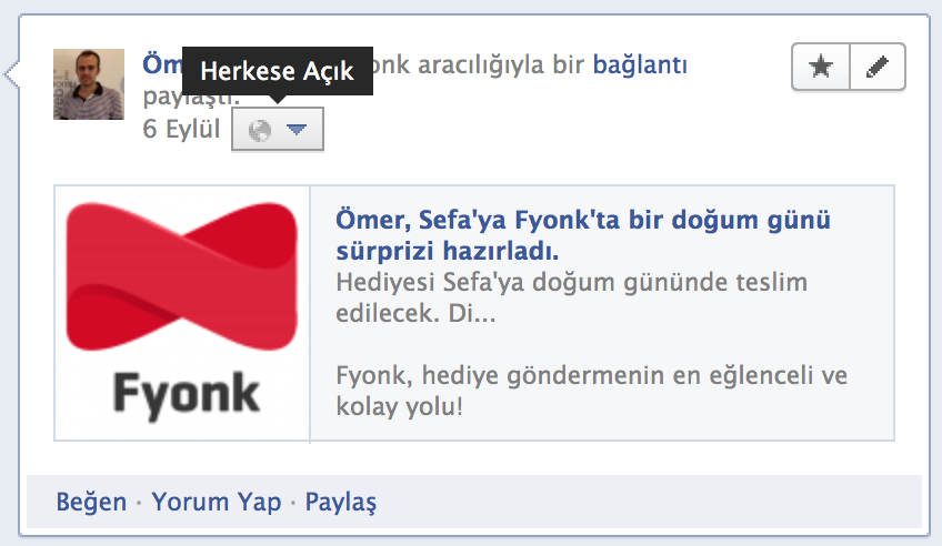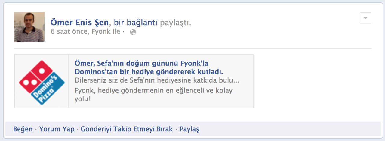 Fyonk.com arkadaşıma hediyeyi bugün teslim edeceğini söylemişti. Hatta bugün duvarımda bir yazı daha girildi.